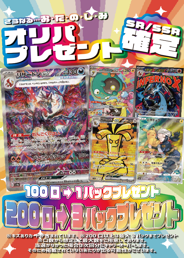 ② 100口以上購入で【SR/SSR確定!オリパプレゼント】
